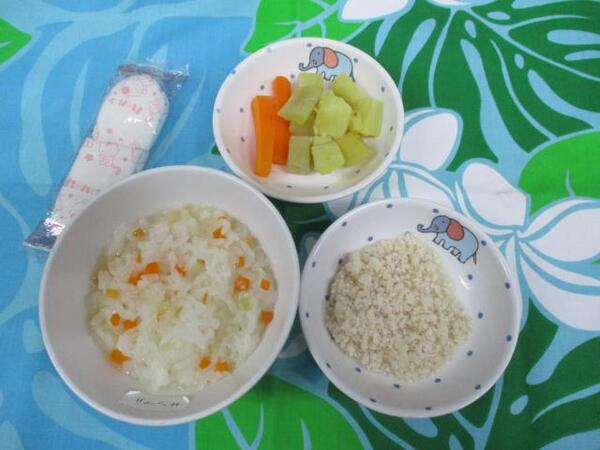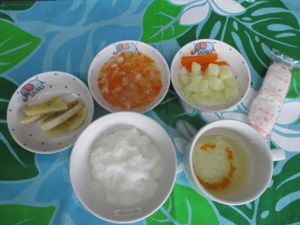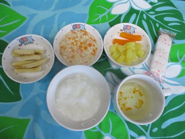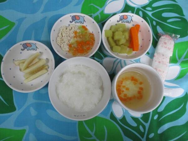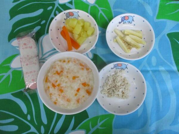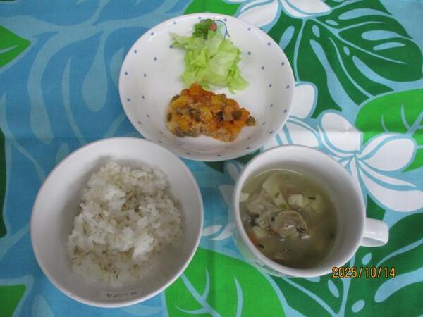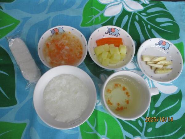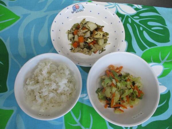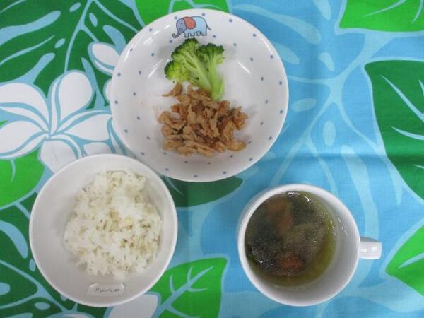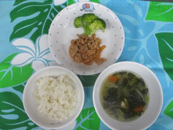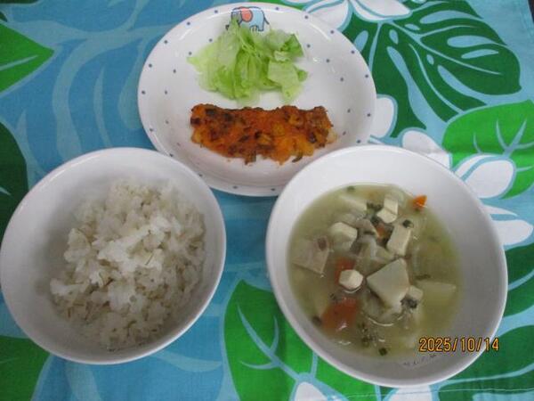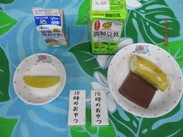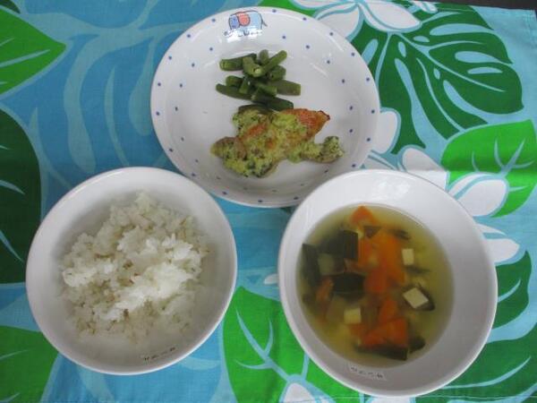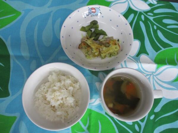〈10時のおやつ〉 ・牛乳🥛 ・キウイ🥝 〈給食〉 ・麦ごはん ・白身魚のケチャマヨソース焼き ・レタス ・豚汁 〈15時のおやつ〉 ・豆乳 ・ココアゼリー(バナナ) |