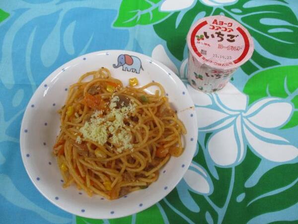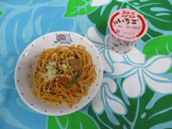 〈10時のおやつ〉 ・牛乳🥛 ・ウエハース 〈給食〉 ・スパゲティナポリタン ・ヨーグルト 〈15時のおやつ〉 ・牛乳 ・キウイ🥝 ・ビスケット |