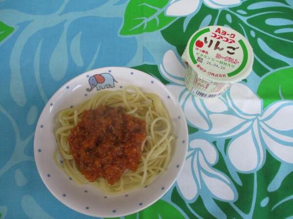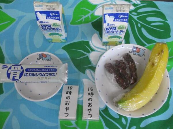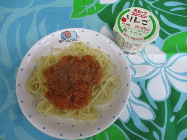 | 〈10時のおやつ〉 ・牛乳🥛 ・ウエハース 〈給食〉 ・スパゲティミートソース ・ヨーグルト 〈15時のおやつ〉 ・牛乳 ・バナナ🍌 ・かりんとう |