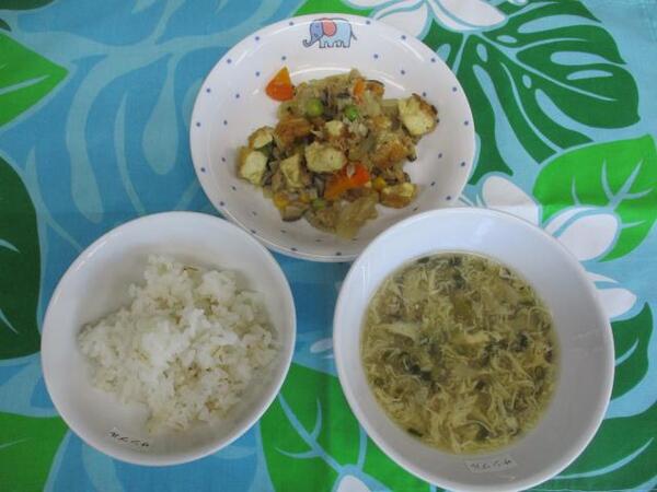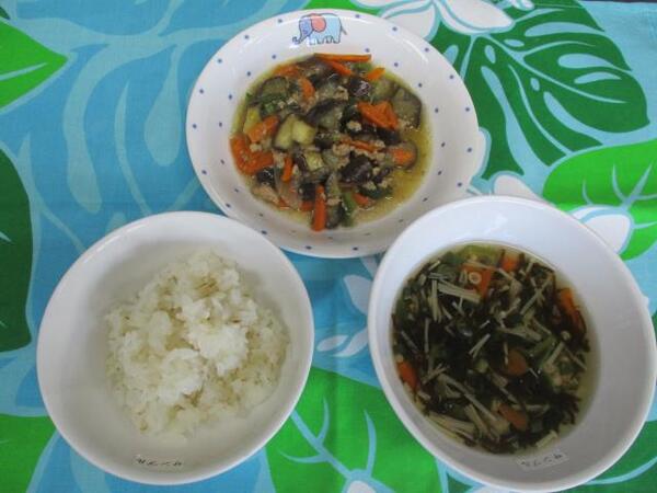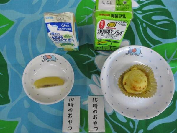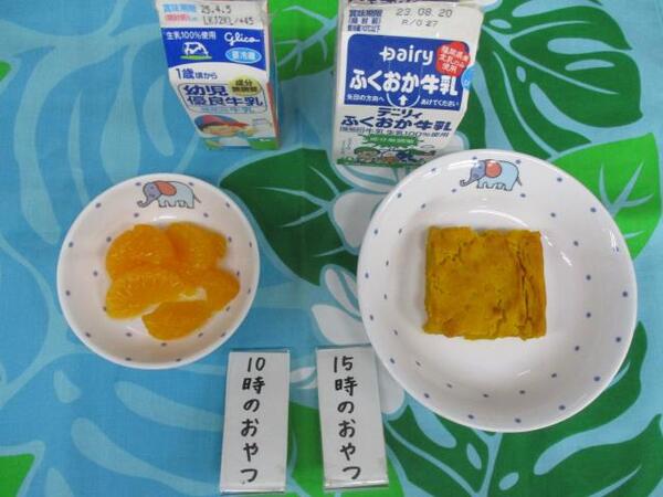 〈10時のおやつ〉 ・牛乳🥛 キウイ 〈給食〉 ・麦ごはん ・麻婆なす ・もずくスープ 〈15時のおやつ〉 ・豆乳 ・スイートポテト |