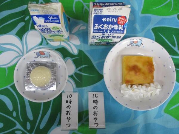| 〈10時のおやつ〉 ・牛乳🥛 ・もも缶 〈給食〉 ・麦ごはん ・鶏肉とさといものうま煮 ・かきたま汁 〈15時のおやつ〉 ・牛乳🥛 ・ナポリタン |