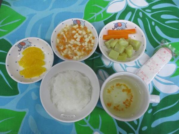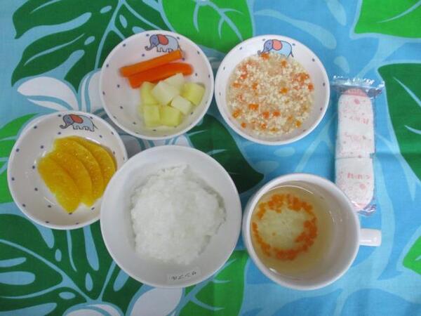 〈10時のおやつ〉 ・牛乳🥛 ・みかん🍊 〈給食〉 ・ポークチャップ ・ゆでブロッコリー ・チンゲン菜のスープ 〈15時のおやつ〉 ・牛乳🥛 ・かぼちゃと豆腐の米粉ケーキ |