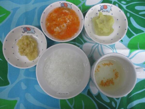 | 〈10時のおやつ〉 ・牛乳🥛 ・いちご🍓 〈給食〉 ・麦ごはん ・麻婆豆腐 ・チンゲン菜のスープ 〈15時のおやつ〉 ・スキムミルク ・ふかし芋 |