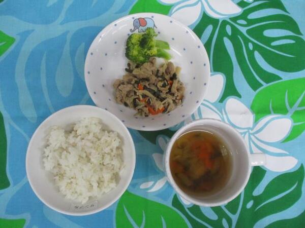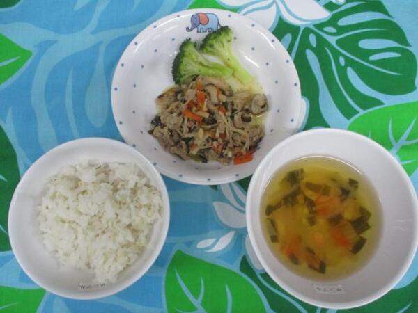 | 〈10時のおやつ〉 ・牛乳🥛 ・チーズ🧀 〈給食〉 ・麦ごはん ・シュンユイ ・レタス ・大根のみそ汁 〈15時のおやつ〉 ・スキムミルク ・人参ゼリー ・せんべい |