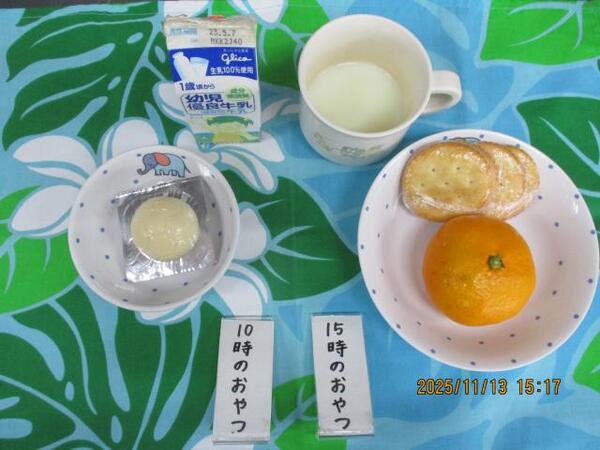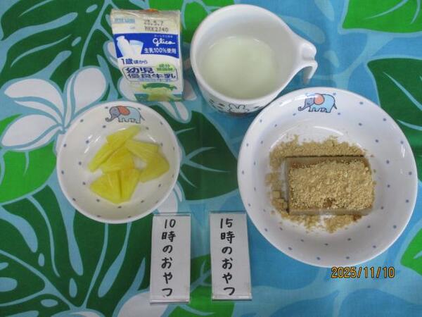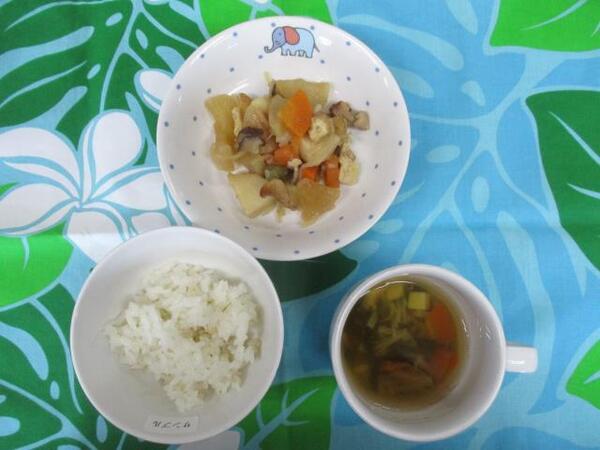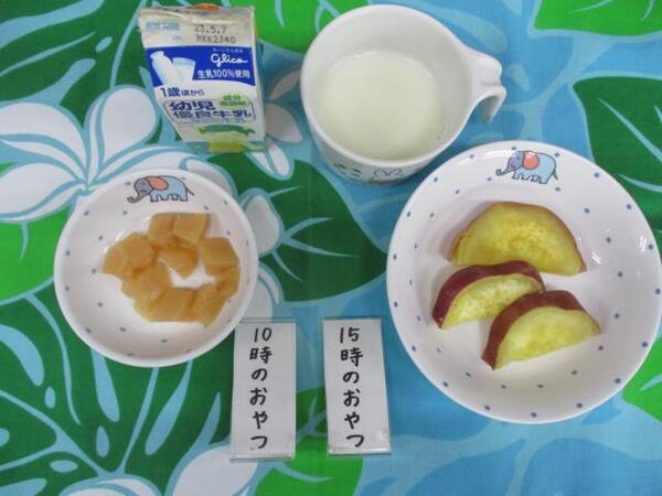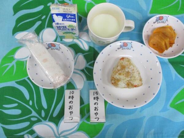 | 〈10時のおやつ〉 ・牛乳🥛 ・せんべい 〈給食〉 ・かぼちゃパン ・ポトフ ・切り干し大根の味噌マヨネーズ和え 〈15時のおやつ〉 ・スキムミルク ・こぎつねごはん 以上児のみ柿 |