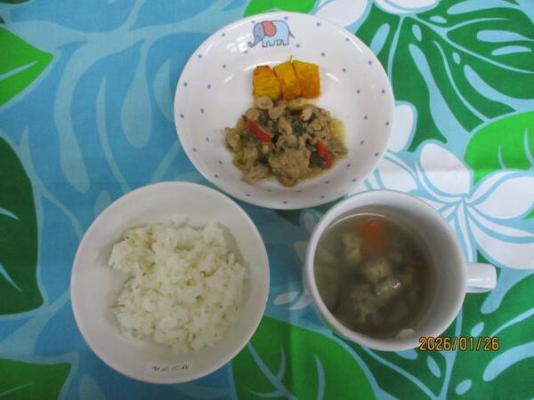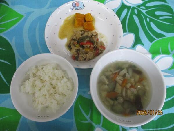 | 〈10時のおやつ〉 ・牛乳🥛 ・オレンジ🍊 〈給食〉 ・麦ごはん ・ピーマンと豚肉のソース炒め ・焼きかぼちゃ ・五目みそ汁 〈15時のおやつ〉 ・豆乳 ・ベークドポテト |