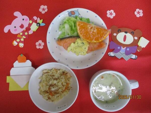 | 〈10時のおやつ〉 ・牛乳🥛 ・みかん缶🍊 〈給食〉 ・麦ごはん ・カレーシチュー ・じゃこサラダ 〈15時のおやつ〉 ・豆乳 ・スイートコーンのパンケーキ |