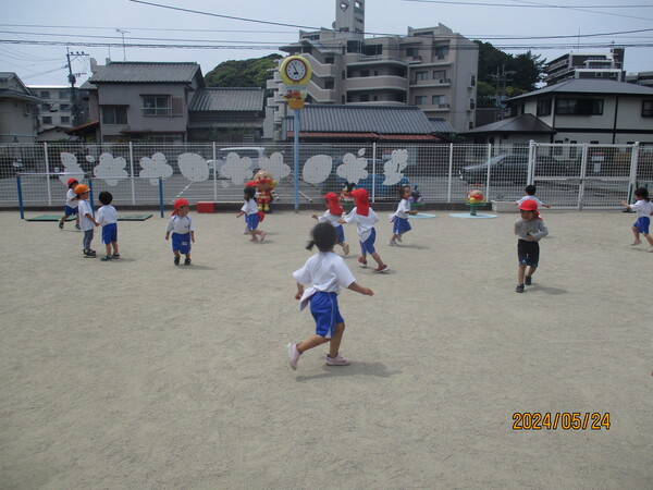 | 今日は裏庭で遊びました🌟😌雨が降る前だったので、元気に体を動かすことができましたよ🎵月曜日は、夏祭りよろしくおねがいいたします😊 |