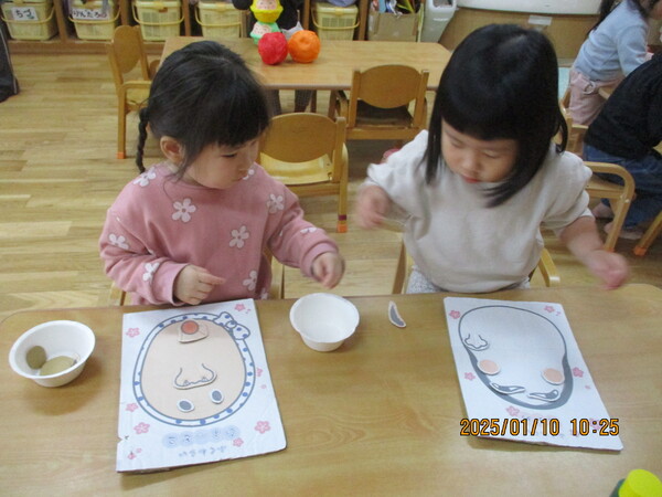 | 〈10時のおやつ〉 ・牛乳🥛 ・みかん🍊 〈給食〉 ・麦ごはん ・がんもどきの中華風うま煮 ・清汁 〈15時のおやつ〉 ・牛乳 ・いちご🍓 ・かりんとう |