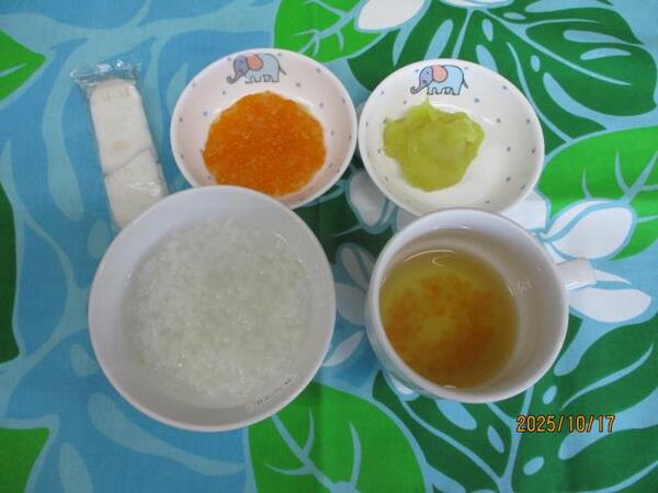 | 〈10時のおやつ〉 ・牛乳🥛 キウイ 〈給食〉 ・麦ごはん ・麻婆なす ・もずくスープ 〈15時のおやつ〉 ・豆乳 ・スイートポテト |