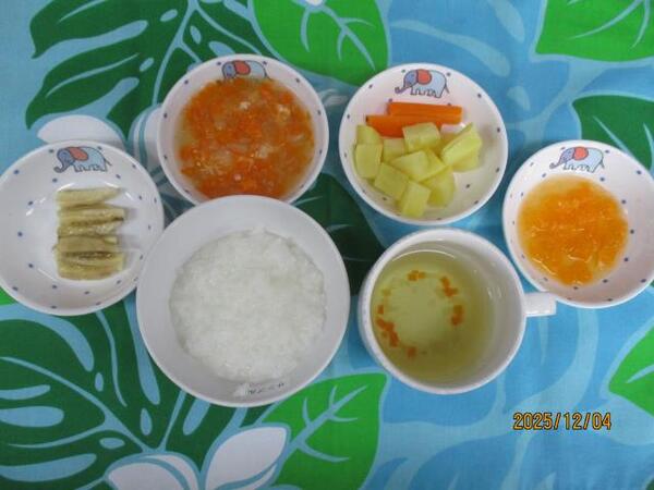 | 〈10時のおやつ〉 ・牛乳🥛 ・バナナ🍌 〈給食〉 ・ミルクパン ・鶏のマーマレード焼き ・レタス ・かぼちゃスープ 〈15時のおやつ〉 ・スキムミルク ・きのこご飯 |