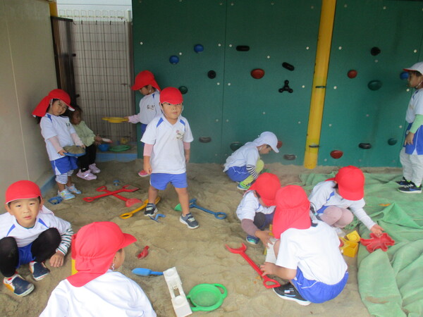 | 今日はお部屋でコーナー遊びをして、そのあと戸外遊びに行きました🥰外では、他のクラスの友達と一緒に遊んだり、先日行ったマラソンが楽しかったようで、今日もみんなで元気に走りました✨ |