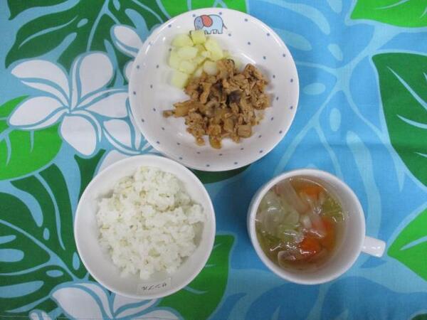 | <10時のおやつ> ・牛乳🥛 ・チーズ🧀 <給食> ・牛肉とコーンの炊き込みご飯 ・スペイン風オムレツ ・レタス(未満児) ・カリフラワーとブロッコリーのサラダ(以上児) ・キャロットスープ <15時のおやつ> ・牛乳🥛 ・ココア蒸しパン |