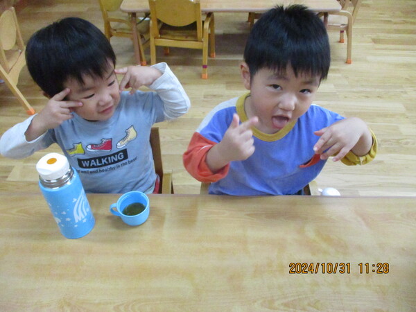 | 〈10時のおやつ〉 ・牛乳🥛 ・オレンジ 〈給食〉 ・パンプキンパン ・チキンクリームシチュー ・マカロニとハムのサラダ 〈15時のおやつ〉 ・飲むヨーグルト ・チーズ入りホットケーキ |