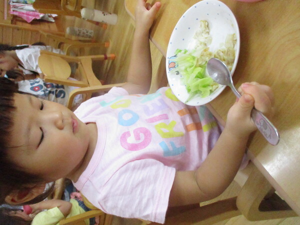 | 〈10時のおやつ〉 ・牛乳🥛 ・オレンジ 〈給食〉 ・麦ごはん ・ポークチャップ ・ふかしいも ・チンゲンサイのスープ 〈15時のおやつ〉 ・牛乳🥛 ・かぼちゃと豆腐の米粉ケーキ |